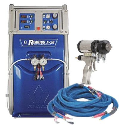 - Πιστοποιημένη (CE) σύγχρονη μηχανή Ψεκασμού και Έγχυσης Πολυουρεθάνης της Αμερικανικής εταιρείας GRACO (Reactor A-20)