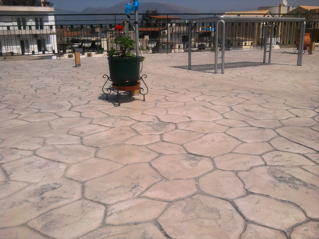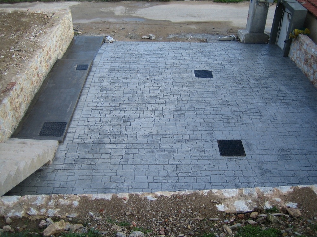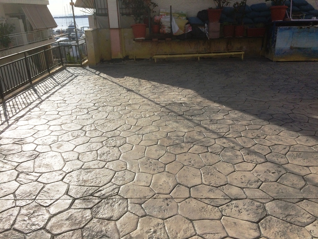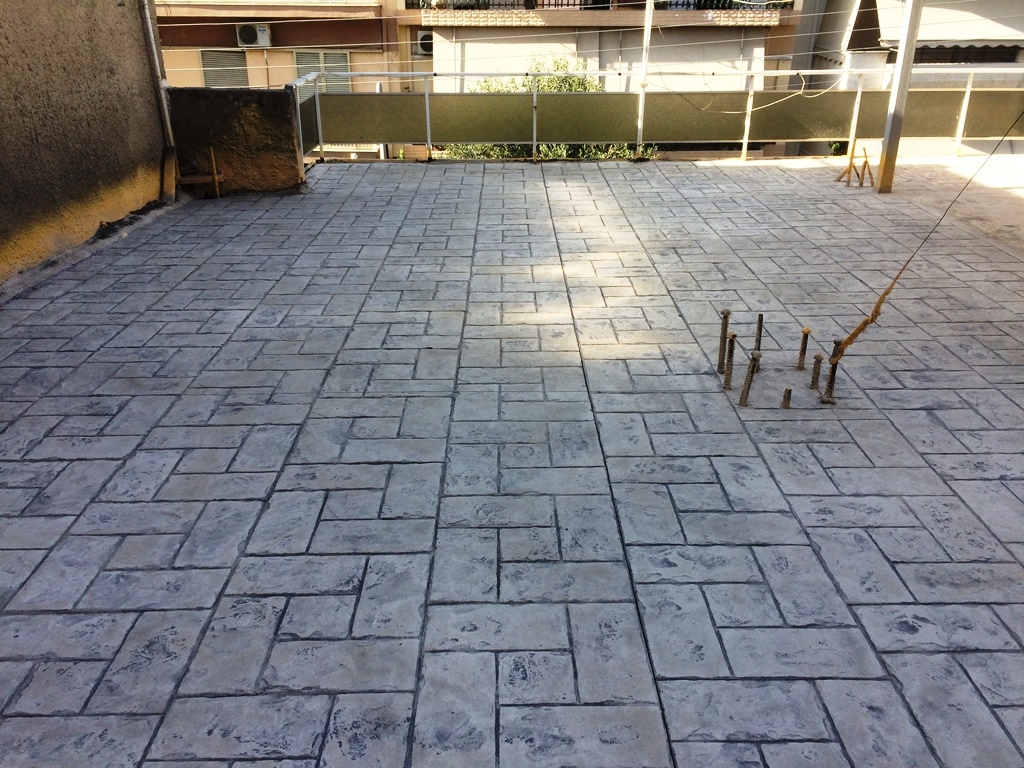 Κατασκευή σταμπωτών δαπέδων σε: Πυλωτές, Αυλές, Ταράτσες, Ακάλυπτους χώρους κτιρίων, Πεζοδρόμια κ.ά