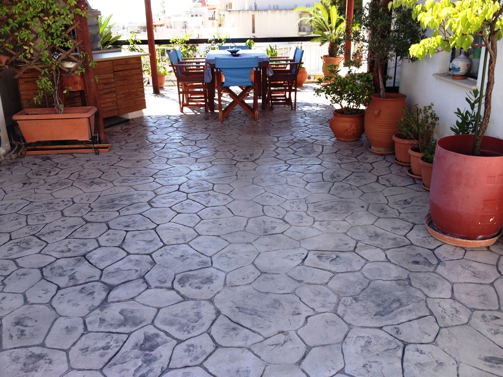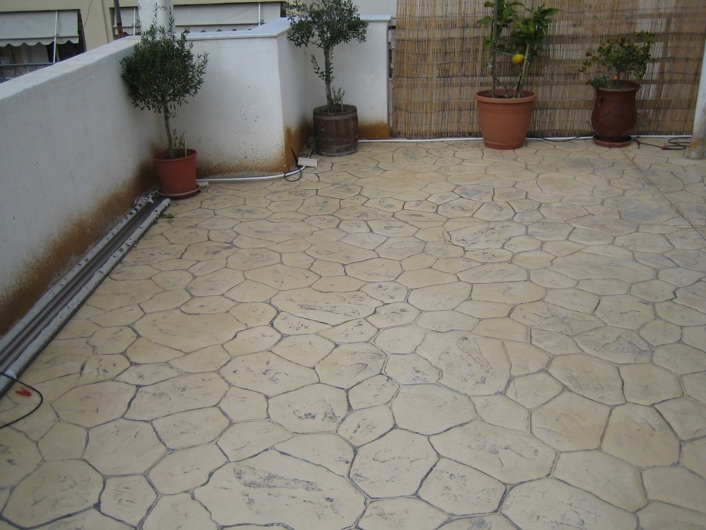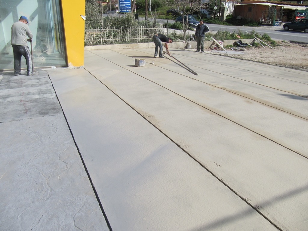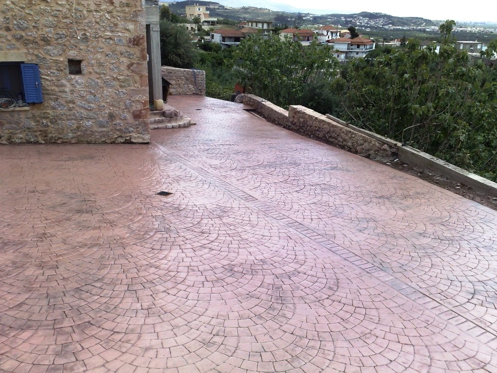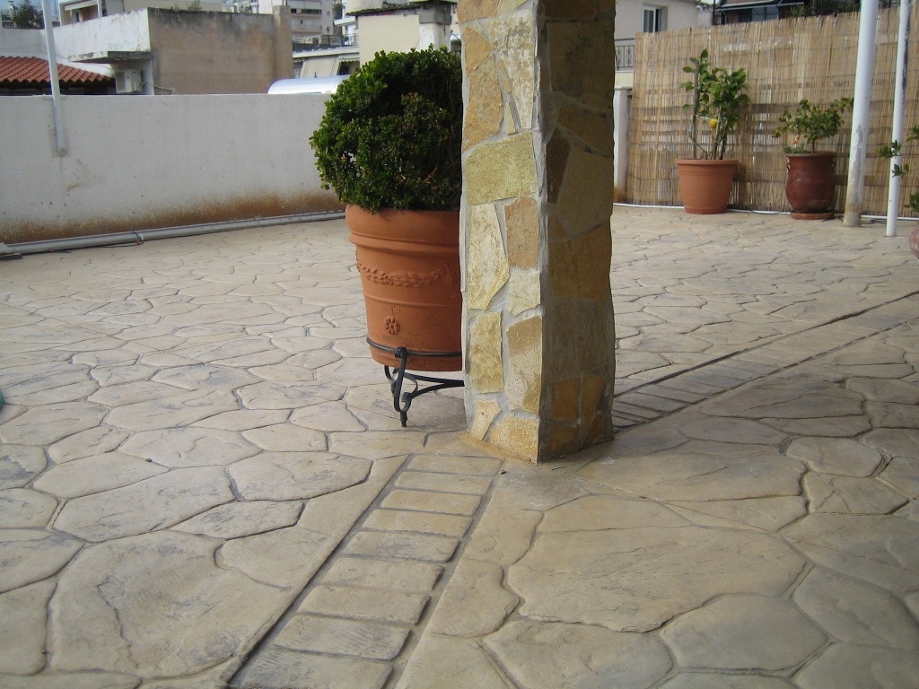 Κατασκευή σταμπωτών δαπέδων σε: Πυλωτές, Αυλές, Ταράτσες, Ακάλυπτους χώρους κτιρίων, Πεζοδρόμια κ.ά