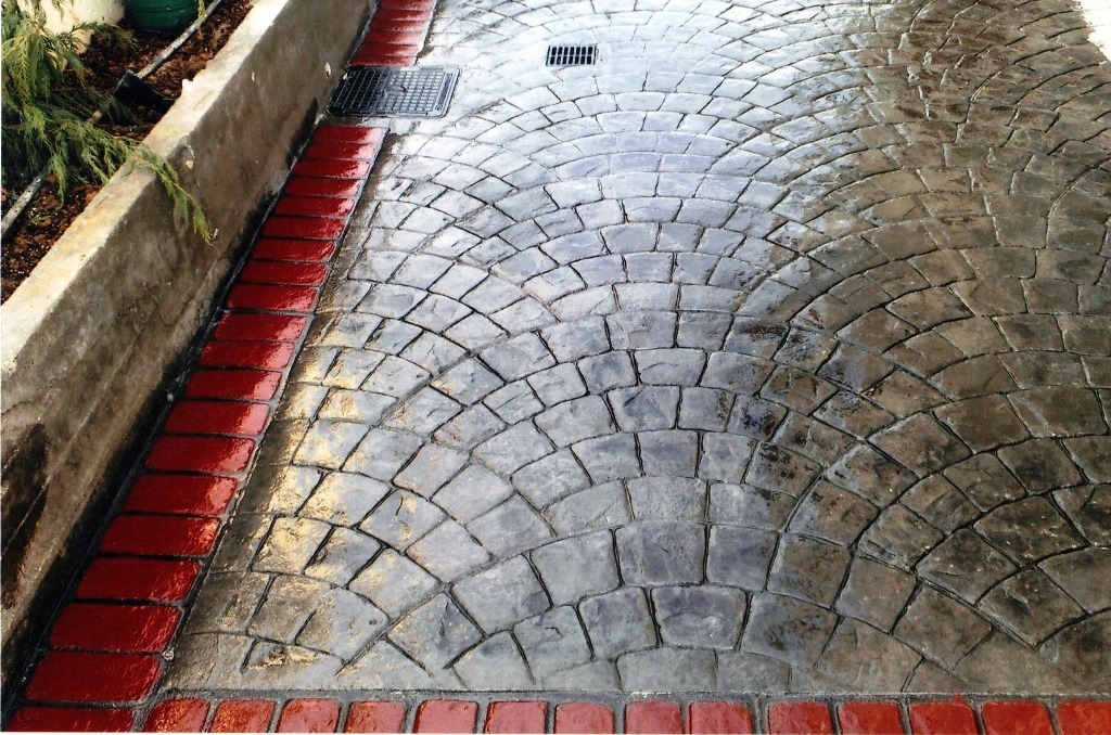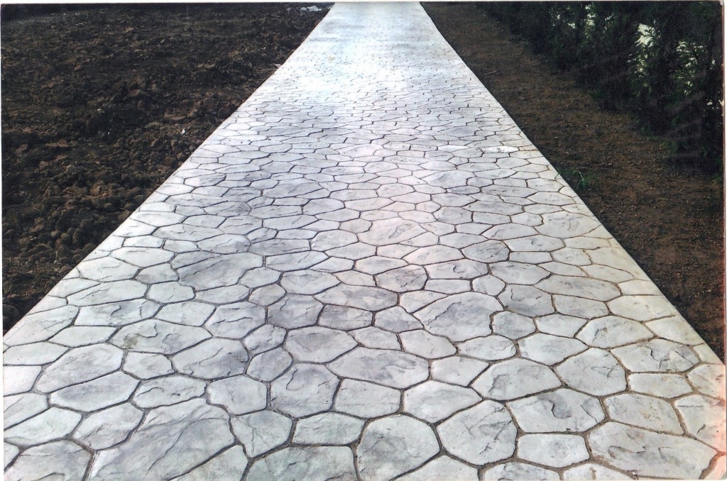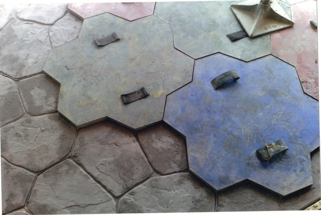 8. Σταμπάρισμα μπετόν με ειδικές λαστιχένιες σφραγίδες για το επιθυμητό σχέδιο