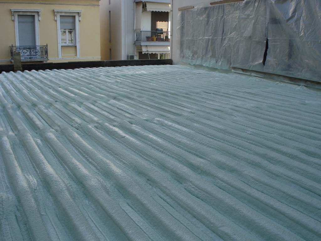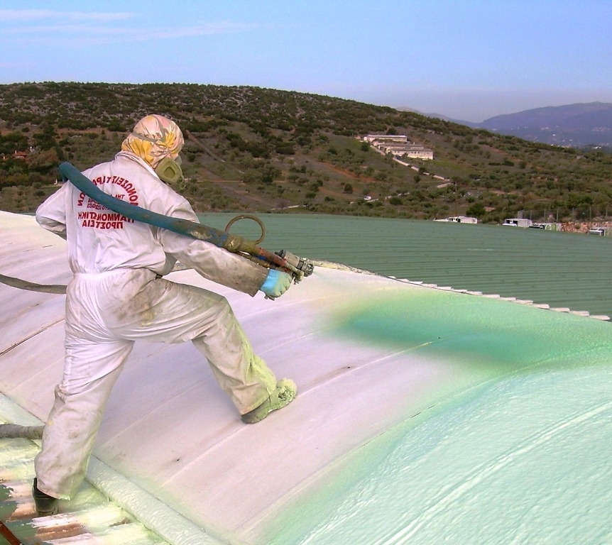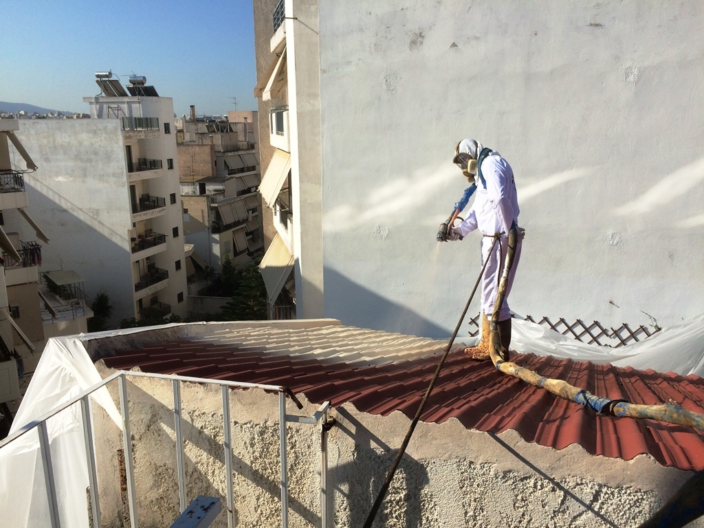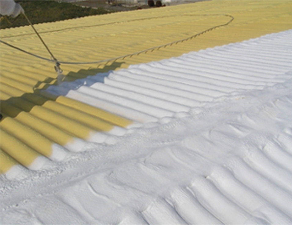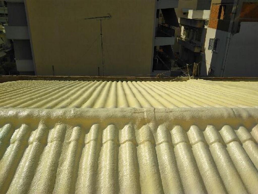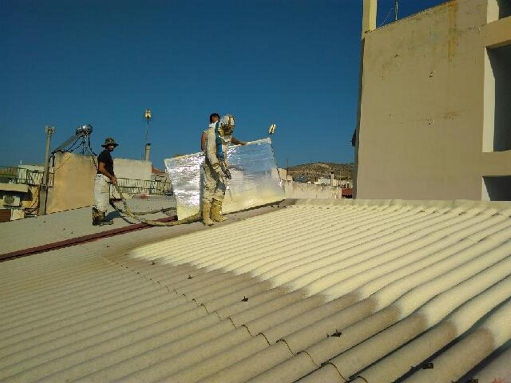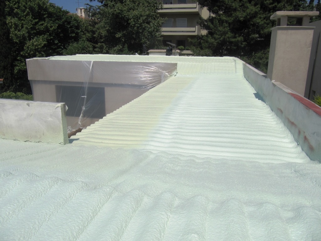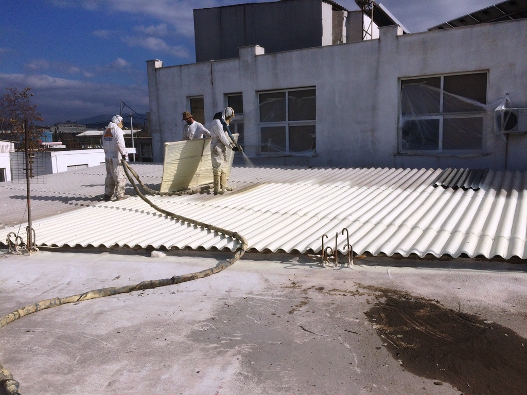 Το πιστοποιημένο ψεκαζόμενο σύστημα μόνωσης Αφρού Πολυουρεθάνης σε συνδυασμό με την επίστρωση Ελαστομερών Πολυουρεθανικών Ρητινών, πάνω σε μεταλλικές επιφάνειες (τραπεζοειδή λαμαρίνα, Ελλενίτ κ.ά), εφαρμόζεται με επιτυχία ώστε να καλύψει τις σημαντικές και ιδιαίτερες απαιτήσεις του έργου σε θερμομόνωση & στεγανοποίηση κάτω υπό ακραίες καιρικές συνθήκες. Η ενιαία μονολιθική επιφάνεια χωρίς αρμούς, ενώσεις και ραφές καταστεί την επιφάνεια απολύτως στεγανή και τέλεια θερμομονωμένη, με εξαιρετική αντοχή ακόμα και σε ακραίες καιρικές συνθήκες και χημικές ατμοσφαιρικές επιδράσεις όπως βροχή, άνεμο, άλατα, νέφος, οξέα, κ.λ.