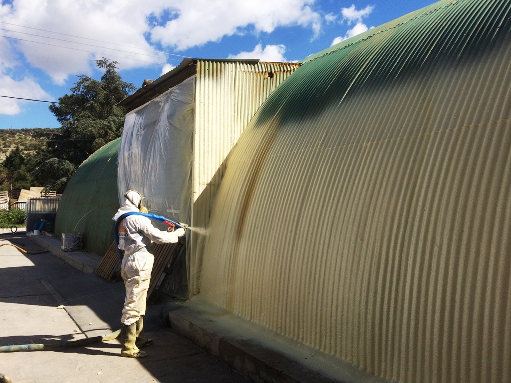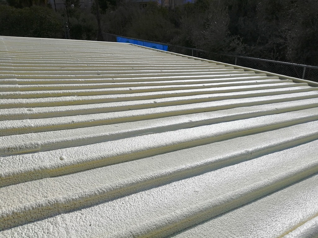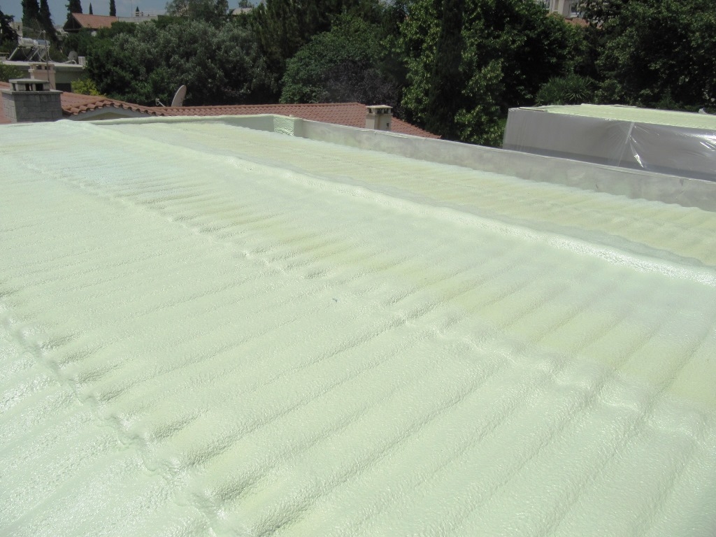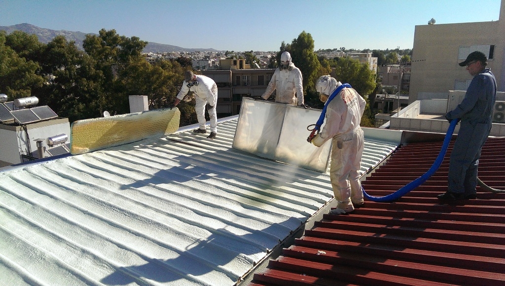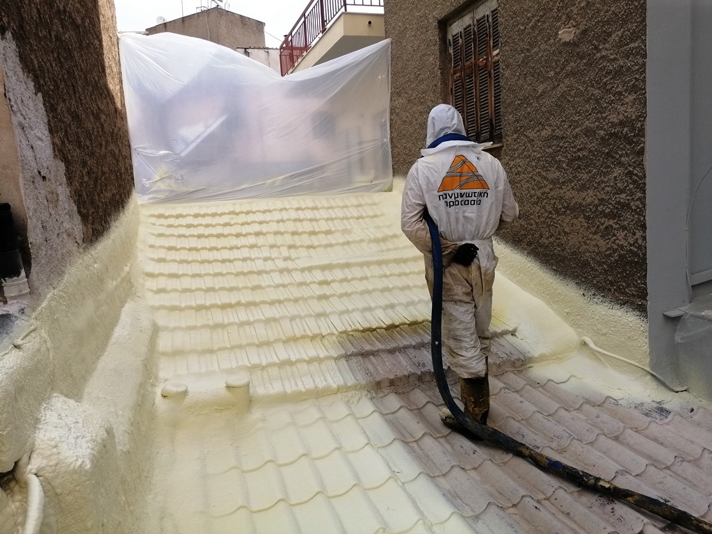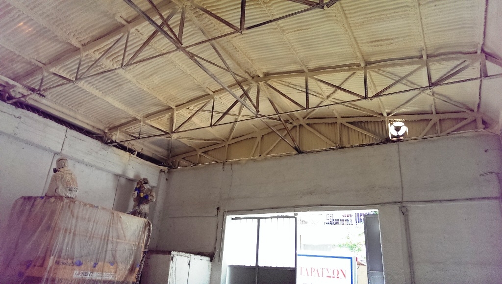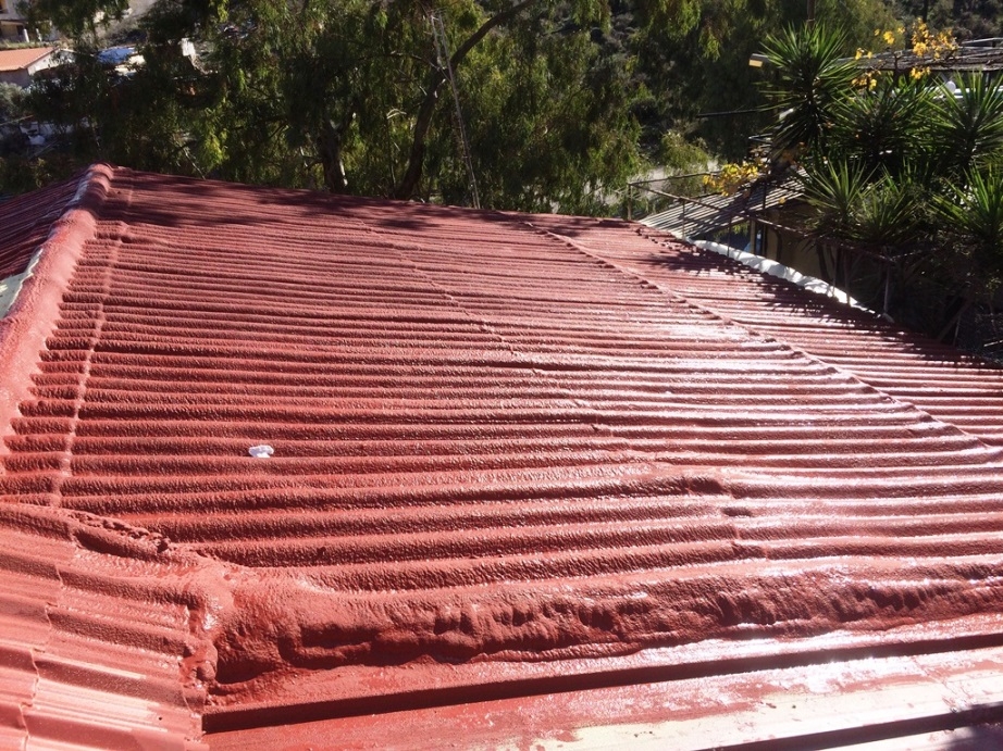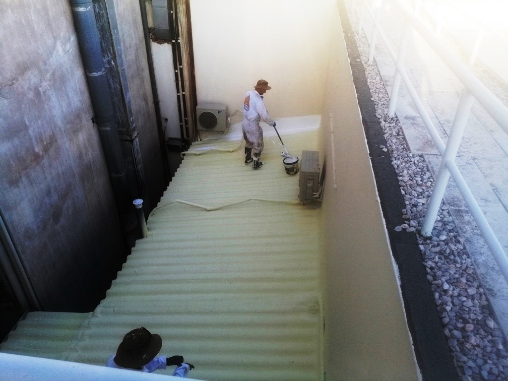 Το πιστοποιημένο ψεκαζόμενο σύστημα μόνωσης Αφρού Πολυουρεθάνης σε συνδυασμό με την επίστρωση Ελαστομερών Πολυουρεθανικών Ρητινών, πάνω σε μεταλλικές επιφάνειες (τραπεζοειδή λαμαρίνα, Ελλενίτ κ.ά), εφαρμόζεται με επιτυχία ώστε να καλύψει τις σημαντικές και ιδιαίτερες απαιτήσεις του έργου σε θερμομόνωση & στεγανοποίηση κάτω υπό ακραίες καιρικές συνθήκες. Η ενιαία μονολιθική επιφάνεια χωρίς αρμούς, ενώσεις και ραφές καταστεί την επιφάνεια απολύτως στεγανή και τέλεια θερμομονωμένη, με εξαιρετική αντοχή ακόμα και σε ακραίες καιρικές συνθήκες και χημικές ατμοσφαιρικές επιδράσεις όπως βροχή, άνεμο, άλατα, νέφος, οξέα, κ.λ.