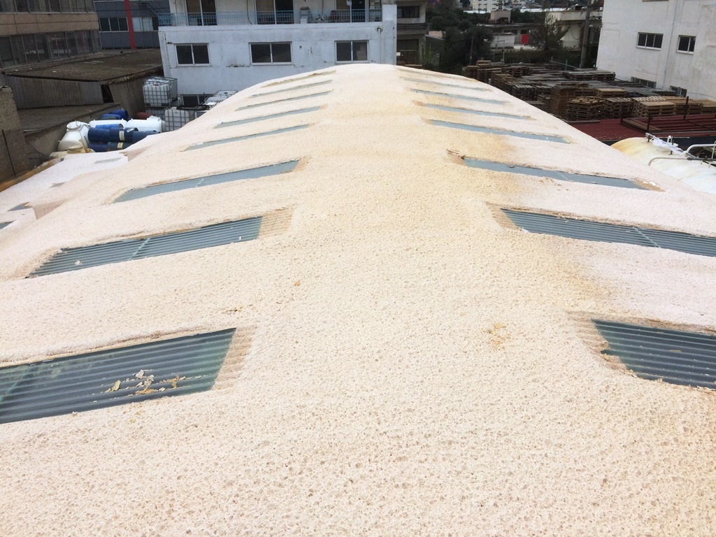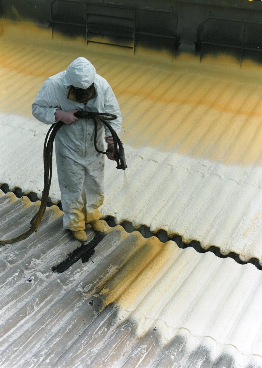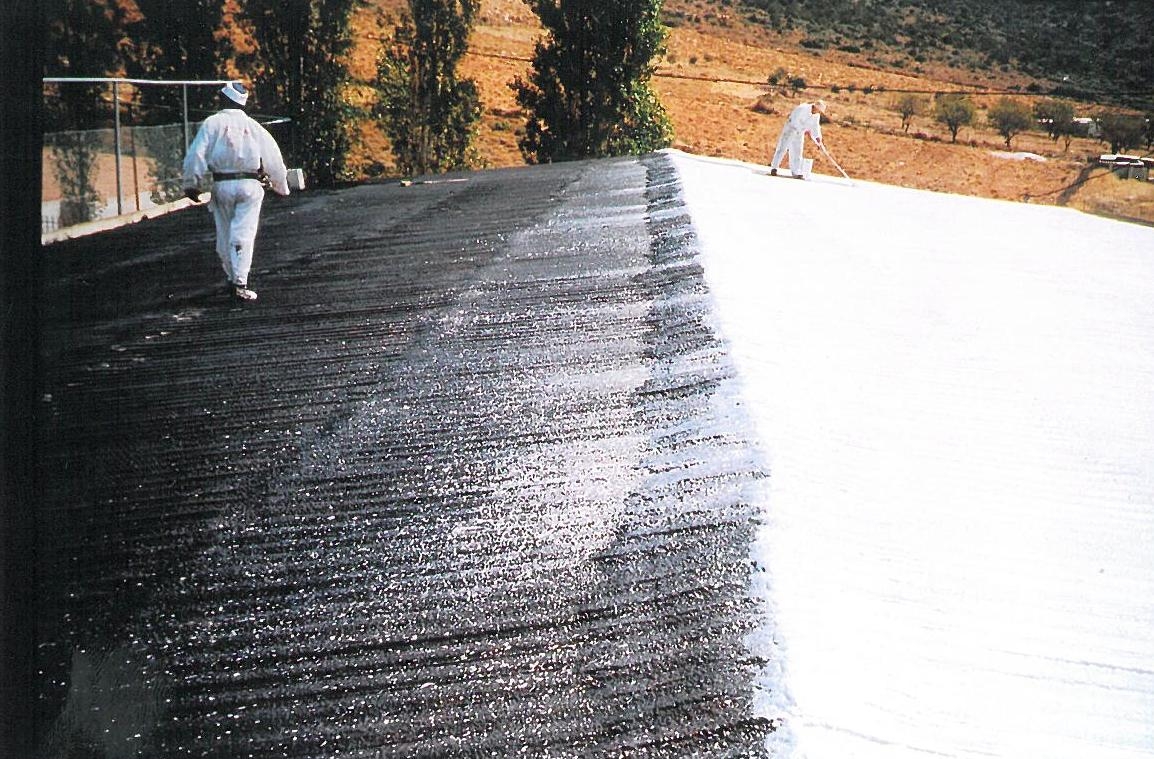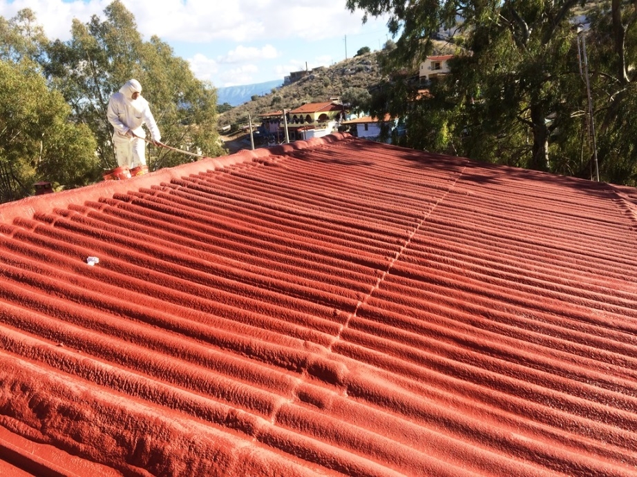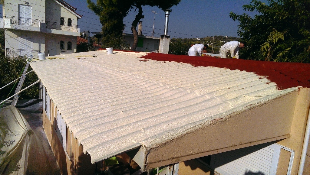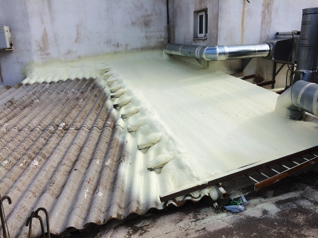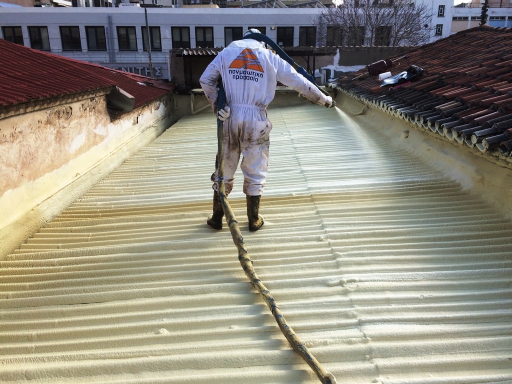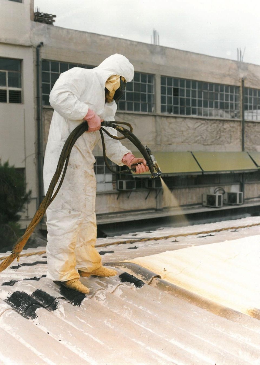 Το πιστοποιημένο ψεκαζόμενο σύστημα μόνωσης Αφρού Πολυουρεθάνης σε συνδυασμό με την επίστρωση Ελαστομερών Πολυουρεθανικών Ρητινών, πάνω σε μεταλλικές επιφάνειες (τραπεζοειδή λαμαρίνα, Ελλενίτ κ.ά), εφαρμόζεται με επιτυχία ώστε να καλύψει τις σημαντικές και ιδιαίτερες απαιτήσεις του έργου σε θερμομόνωση & στεγανοποίηση κάτω υπό ακραίες καιρικές συνθήκες. Η ενιαία μονολιθική επιφάνεια χωρίς αρμούς, ενώσεις και ραφές καταστεί την επιφάνεια απολύτως στεγανή και τέλεια θερμομονωμένη, με εξαιρετική αντοχή ακόμα και σε ακραίες καιρικές συνθήκες και χημικές ατμοσφαιρικές επιδράσεις όπως βροχή, άνεμο, άλατα, νέφος, οξέα, κ.λ.