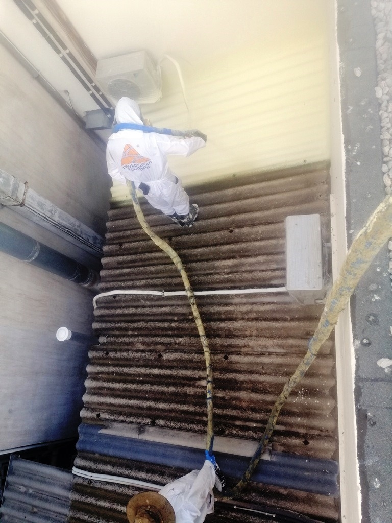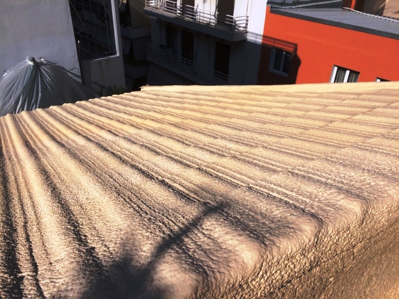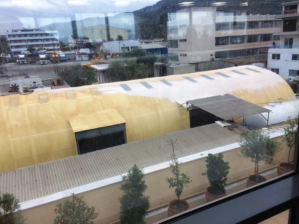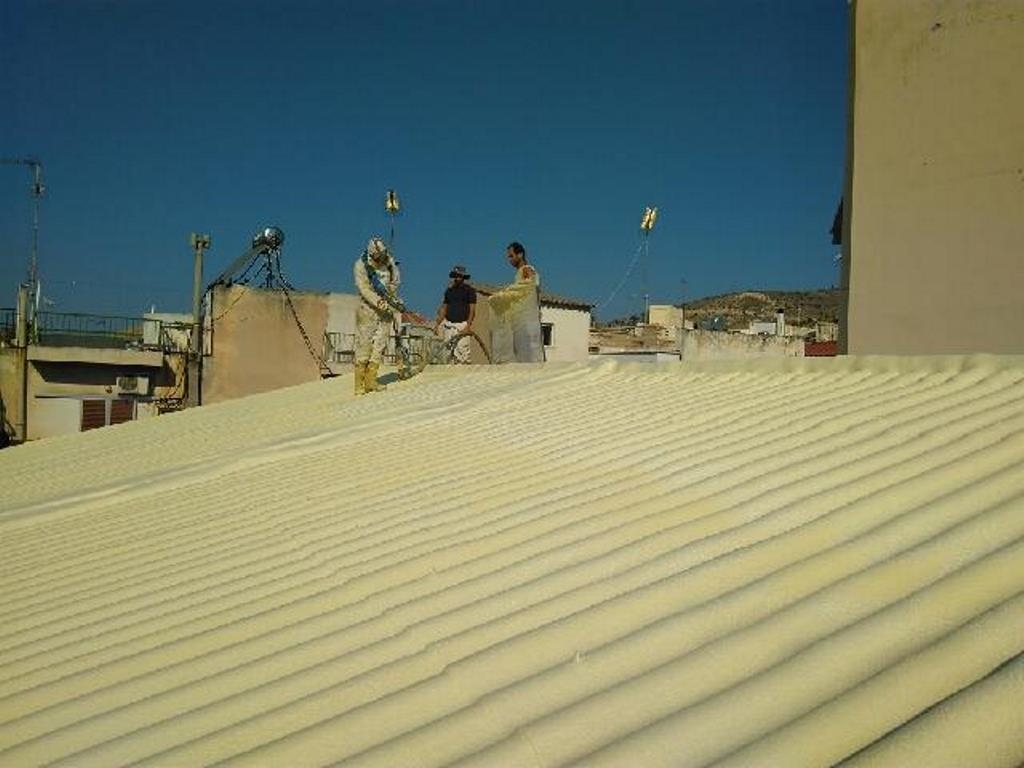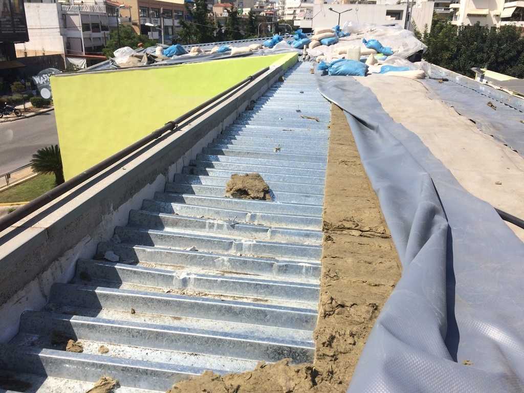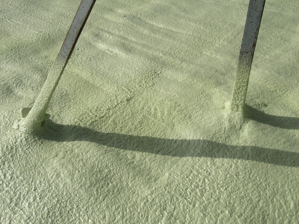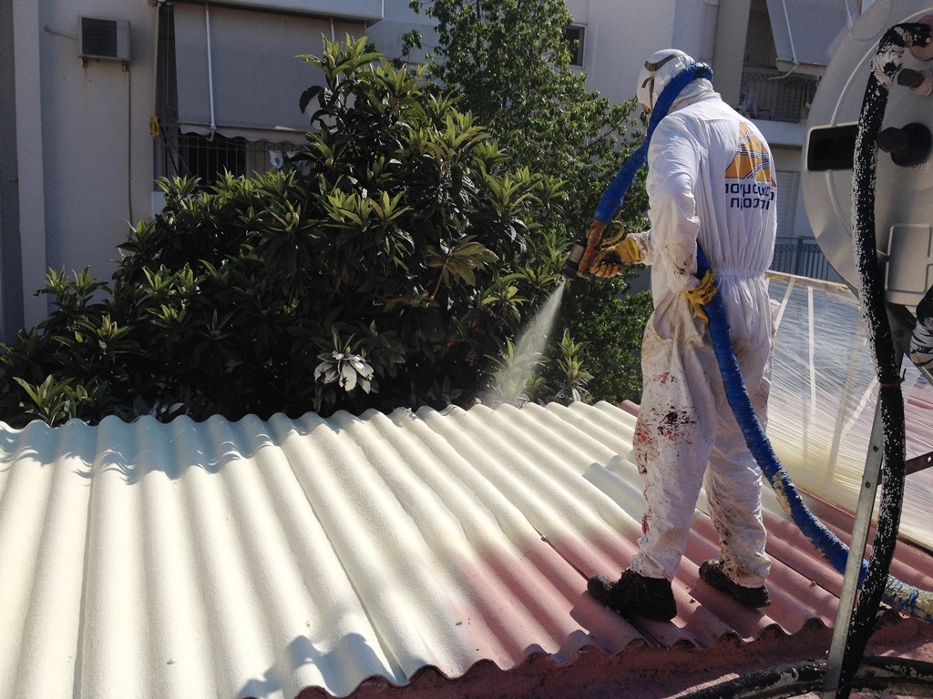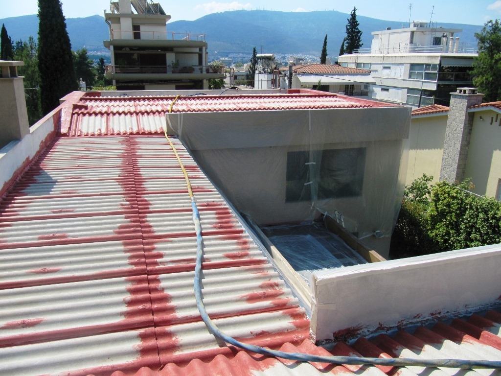 Το πιστοποιημένο ψεκαζόμενο σύστημα μόνωσης Αφρού Πολυουρεθάνης σε συνδυασμό με την επίστρωση Ελαστομερών Πολυουρεθανικών Ρητινών, πάνω σε μεταλλικές επιφάνειες (τραπεζοειδή λαμαρίνα, Ελλενίτ κ.ά), εφαρμόζεται με επιτυχία ώστε να καλύψει τις σημαντικές και ιδιαίτερες απαιτήσεις του έργου σε θερμομόνωση & στεγανοποίηση κάτω υπό ακραίες καιρικές συνθήκες. Η ενιαία μονολιθική επιφάνεια χωρίς αρμούς, ενώσεις και ραφές καταστεί την επιφάνεια απολύτως στεγανή και τέλεια θερμομονωμένη, με εξαιρετική αντοχή ακόμα και σε ακραίες καιρικές συνθήκες και χημικές ατμοσφαιρικές επιδράσεις όπως βροχή, άνεμο, άλατα, νέφος, οξέα, κ.λ.