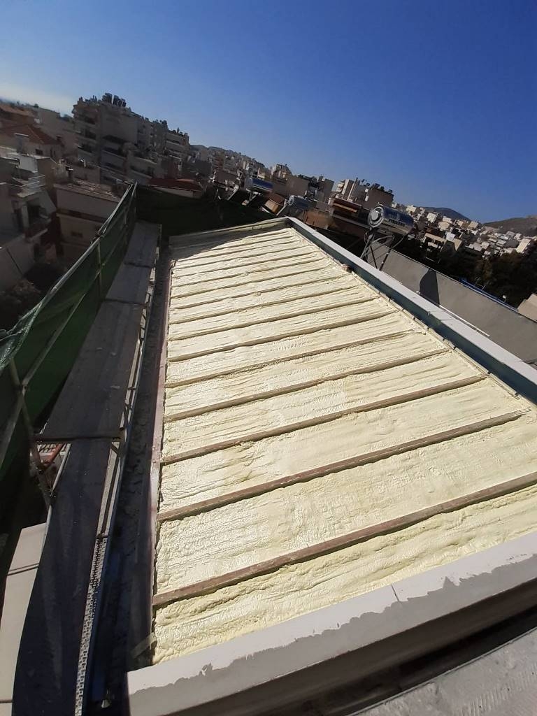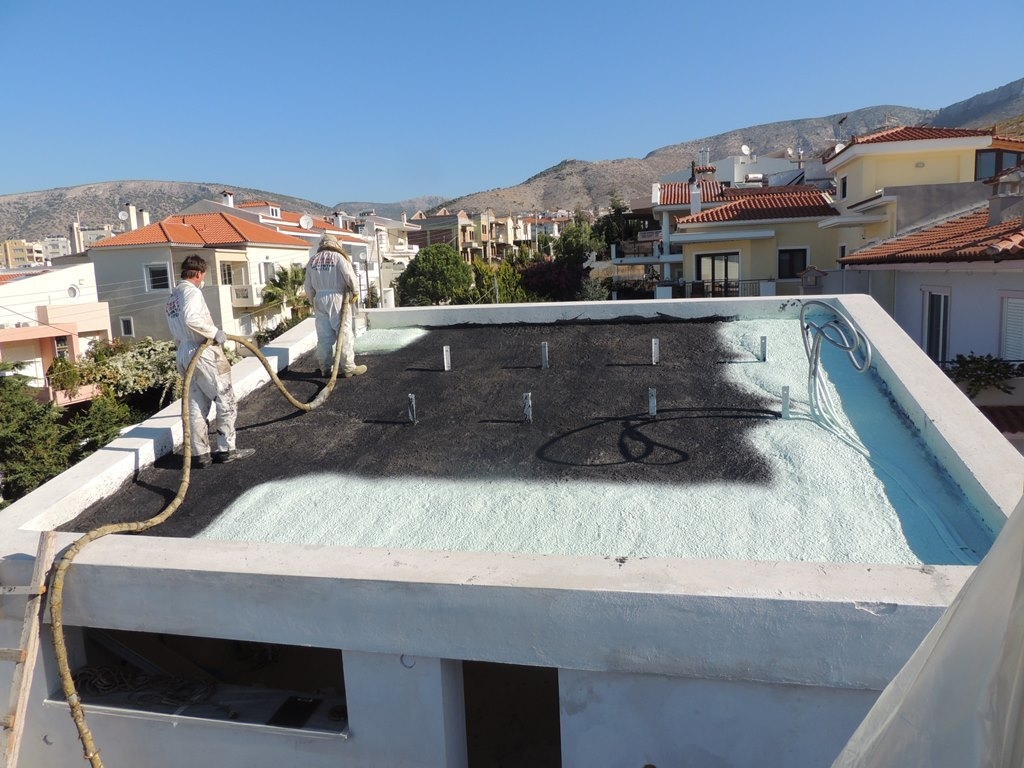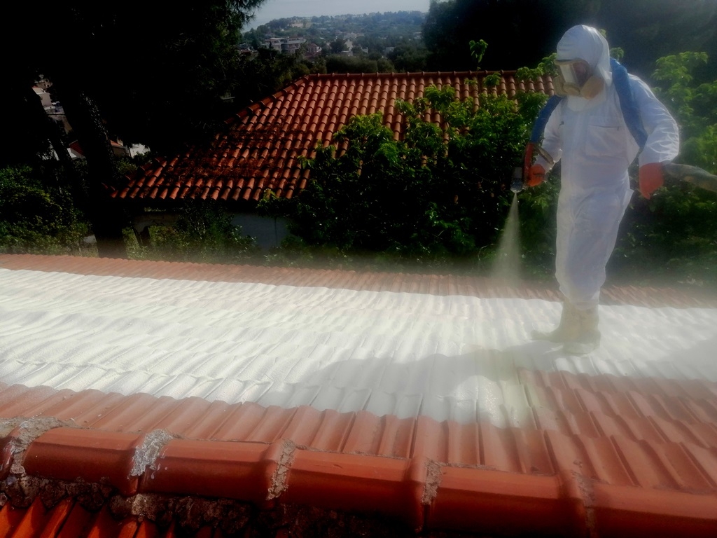 Το πιστοποιημένο σύστημα μόνωσης με ψεκαζόμενο Αφρό Πολυουρεθάνης σε κεραμοσκεπές, στέγες, ραμποτέ, ελλενίτ, λαμαρίνες, κ.ά, παρέχει άριστες θερμομονωτικές και στεγανωτικές ιδιότητες.