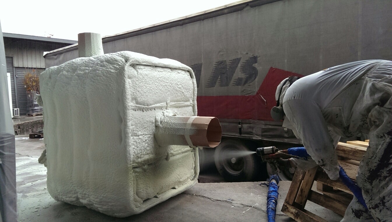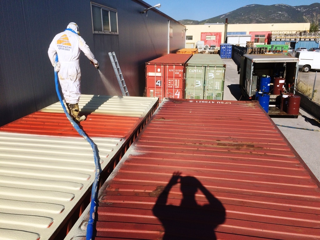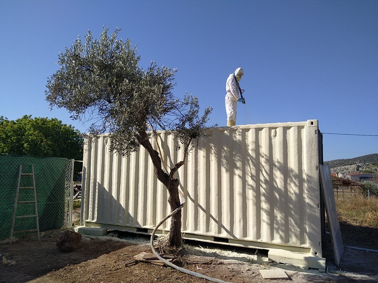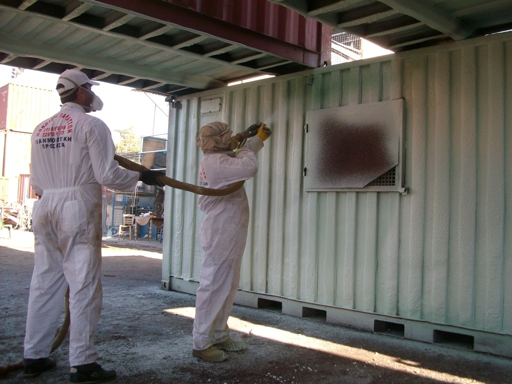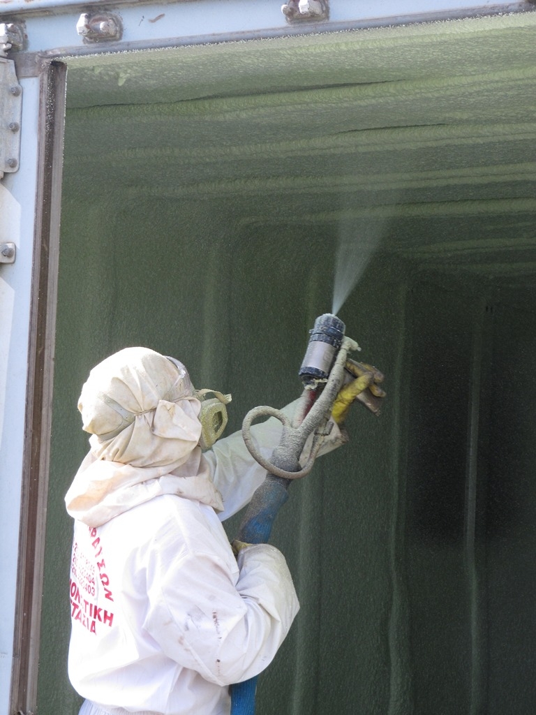 Spray Αφρού Πολυουρεθάνης σε: Πτηνοτροφικές μονάδες, Containers, Ψυγεία, Πλοία, Δεξαμενές, Σιλό τροφίμων, Θόλους (Toll), Τέντες, κ.ά